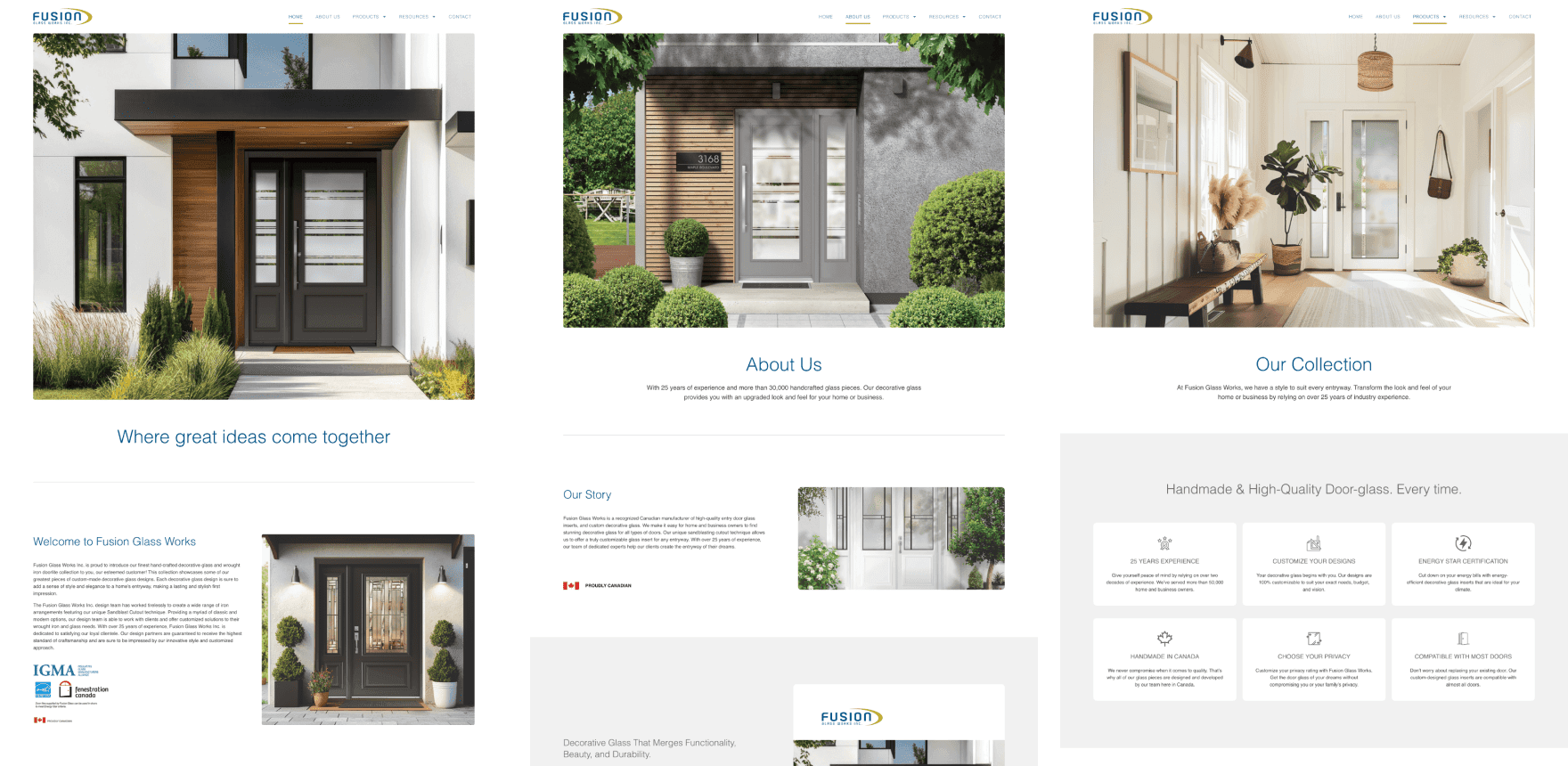 We designed the core pages to be simple, modern, and conversion-focused. Each layout reflects Fusion Glass Works’ refined aesthetic, pairing clean structure with subtle visual depth. The result is a digital foundation that feels both elegant and effective — a site the client can proudly share, and one that leaves a strong impression on visitors exploring their craftsmanship and high-quality glass products.