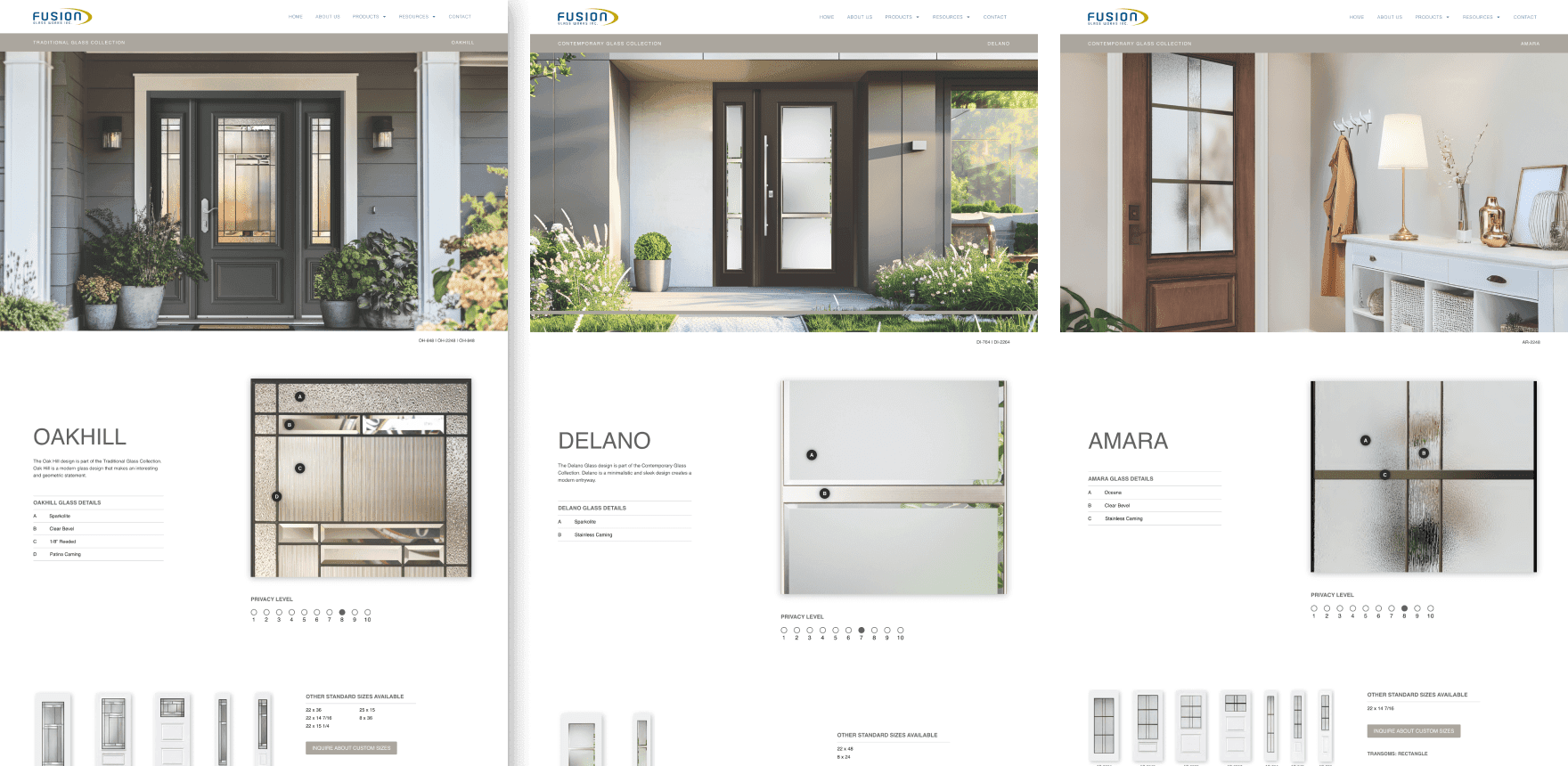 Working closely with the Fusion Glass Works team, we developed a flexible product page system that brings clarity and consistency to their extensive catalog. Each page follows a uniform structure designed to present information clearly while maintaining a refined visual rhythm. The system allowed us to seamlessly organize and integrate a large volume of products, making it easy for the client to manage, update, and showcase their full collection. The result is a cohesive, scalable framework — aesthetically aligned with their brand and effortless for users to explore.