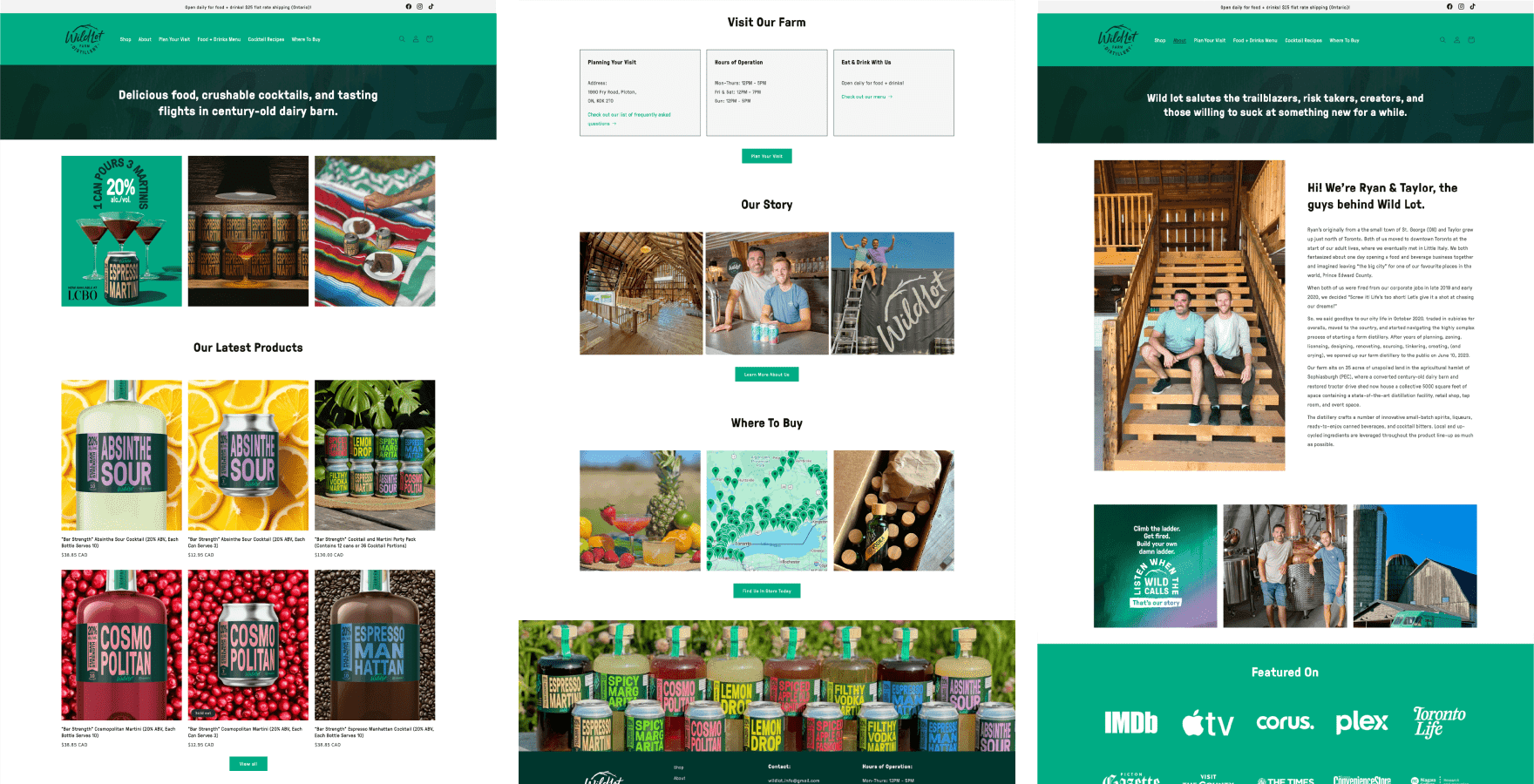 Wild Lot Farm Distillery came to us at a pivotal moment in their journey — as their beverages hit LCBO shelves across Ontario, they needed a website that captured the same energy and confidence driving their growth. We reimagined their Shopify site with a bold, colourful design and a smoother user experience, giving the brand a digital presence as distinctive as their craft.