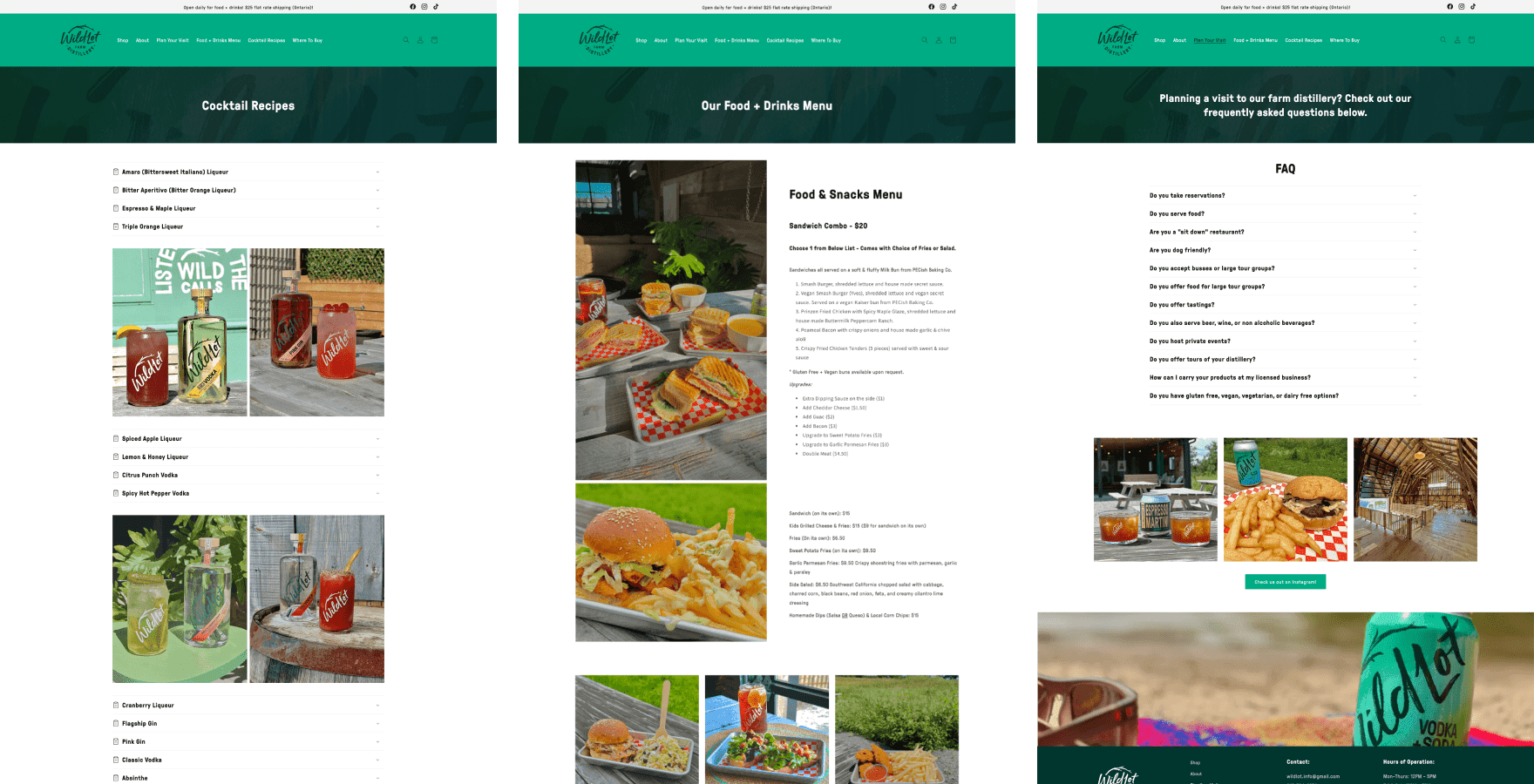 From FAQs to cocktail recipes, each page was designed to invite exploration and perform seamlessly. We built clean accordion sections paired with vibrant imagery and structured layouts that make information easy to browse while keeping pages lightweight and fast. Whether visitors are planning a visit to the farm, checking the menu, or exploring Wild Lot’s craft beverages, every interaction is optimized for clarity, speed and engagement, creating a site that looks great and works even better.